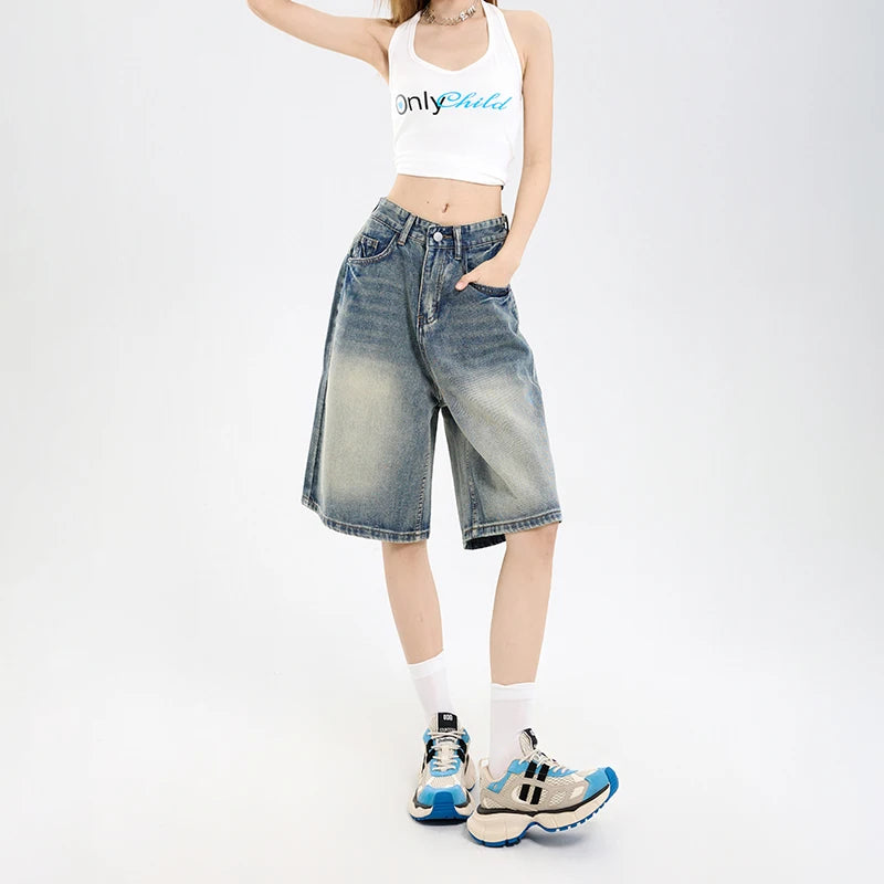 2026 Korean Street Casual Y2K Loose Wide-leg Denim Shorts Five-point Baggy Jeans Women's All-match Straight Summer Hot Shorts