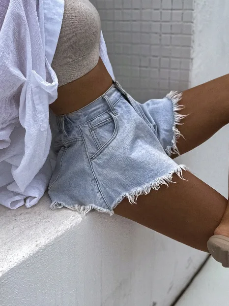 2026 New Umbrella Denim Shorts Women High Waist Blue Tassel Jean Booty Shorts