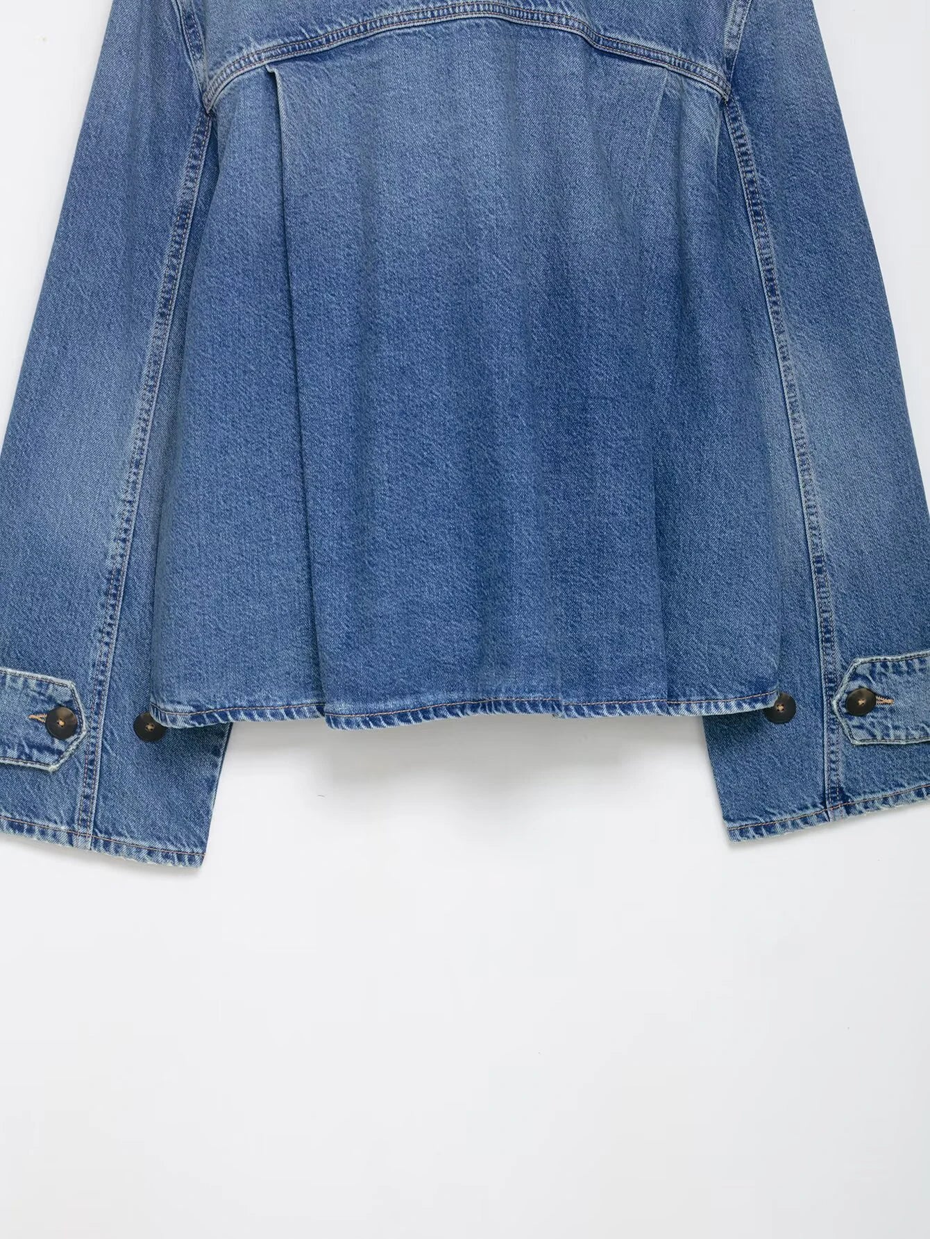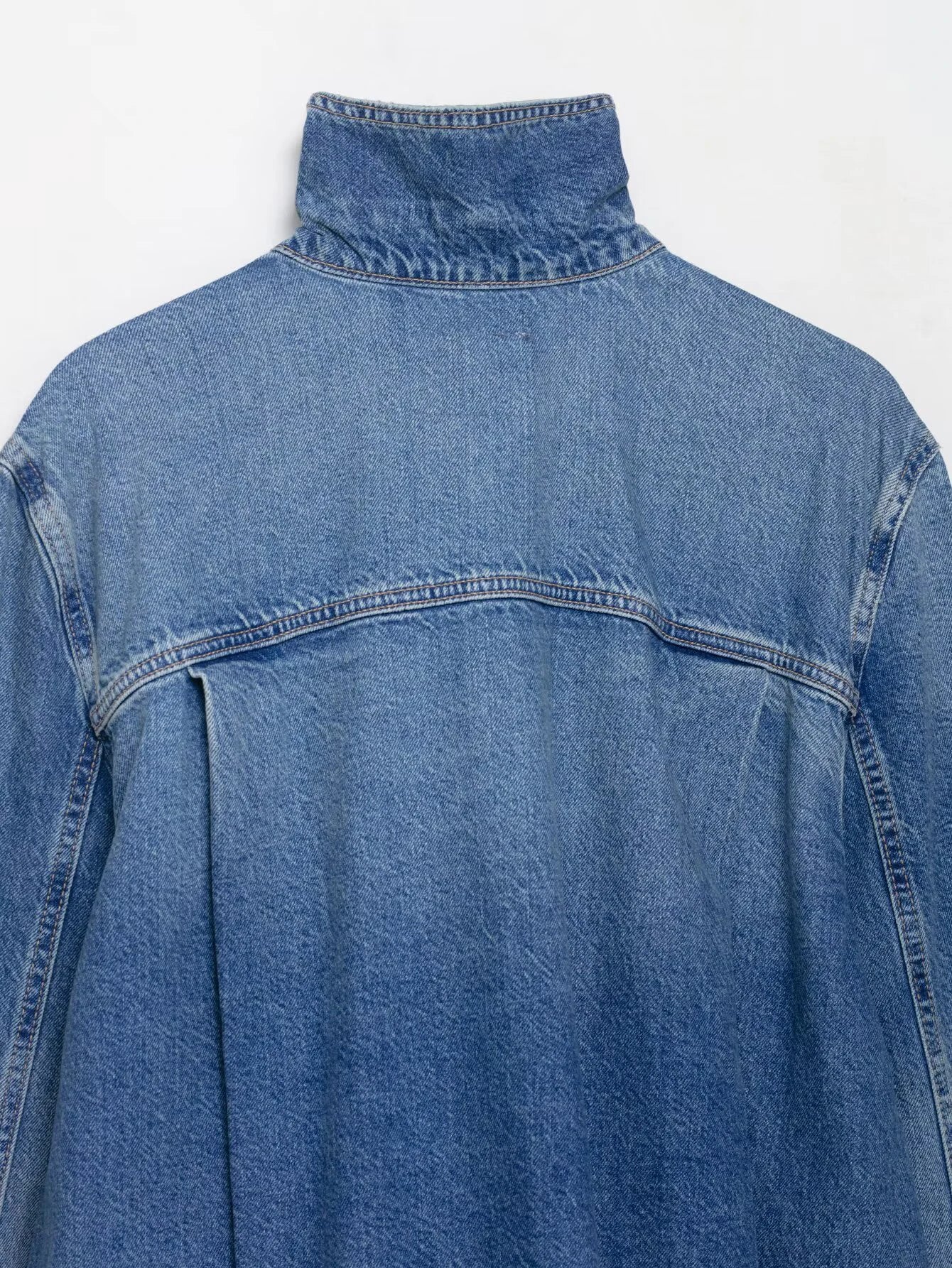 European and American style spring new women's clothing new style hidden button high neck long sleeved denim jacket jacket