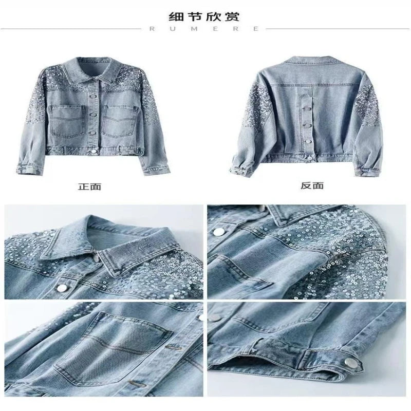 Fashion Sequin Denim Jacket for Women New Short Loose Slim Denim Coat Tops Sping Spring Summer Women's New in Denim Jacket