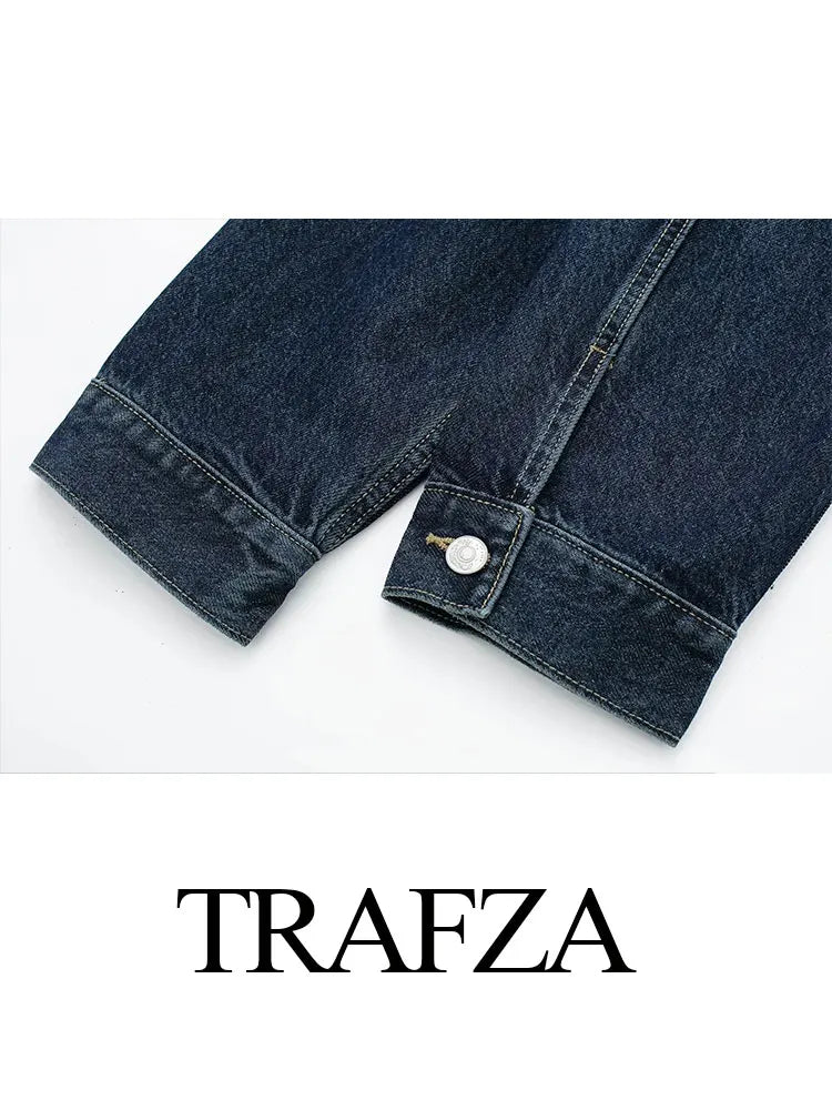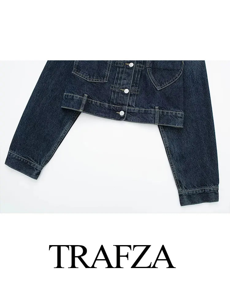 HH Women Dark Blue Denim Coat Heart Pattern Outerwear Long Sleeve Single Breasted Jacket Spring Female Chic Top Coats
