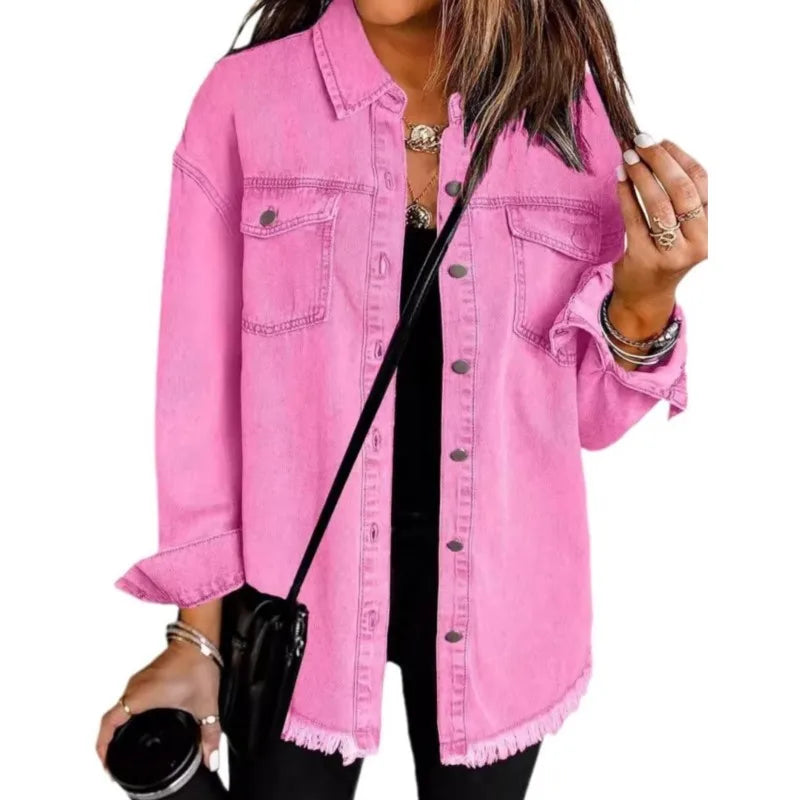 Women Fashion Denim Shirt Full Length Jacket Single Breasted Outerwear Washing High Street Cardigan Pocket Loose Coat Streetwear
