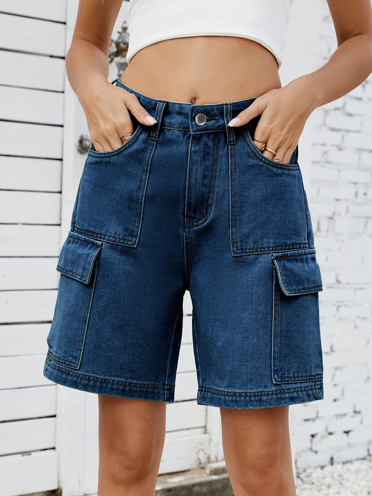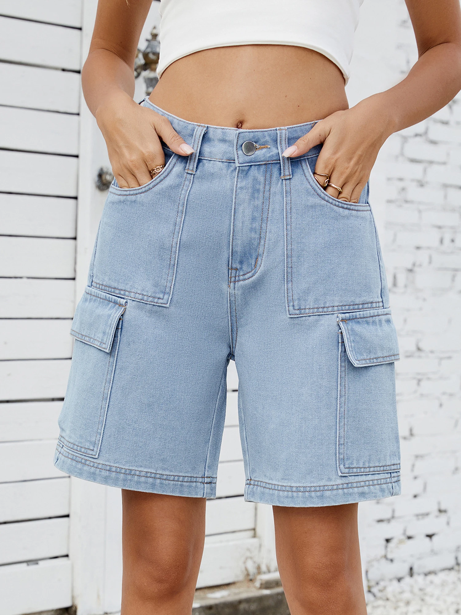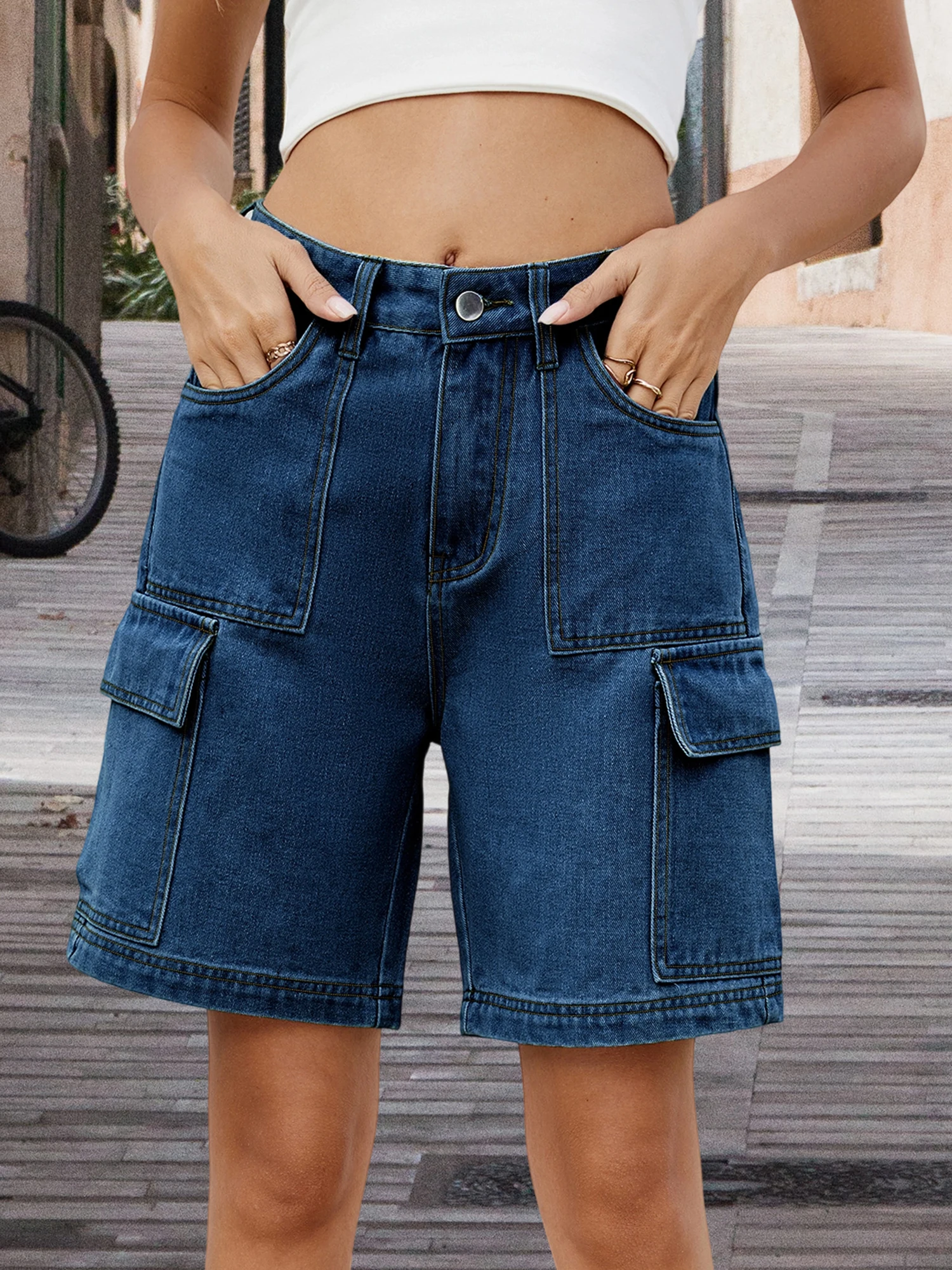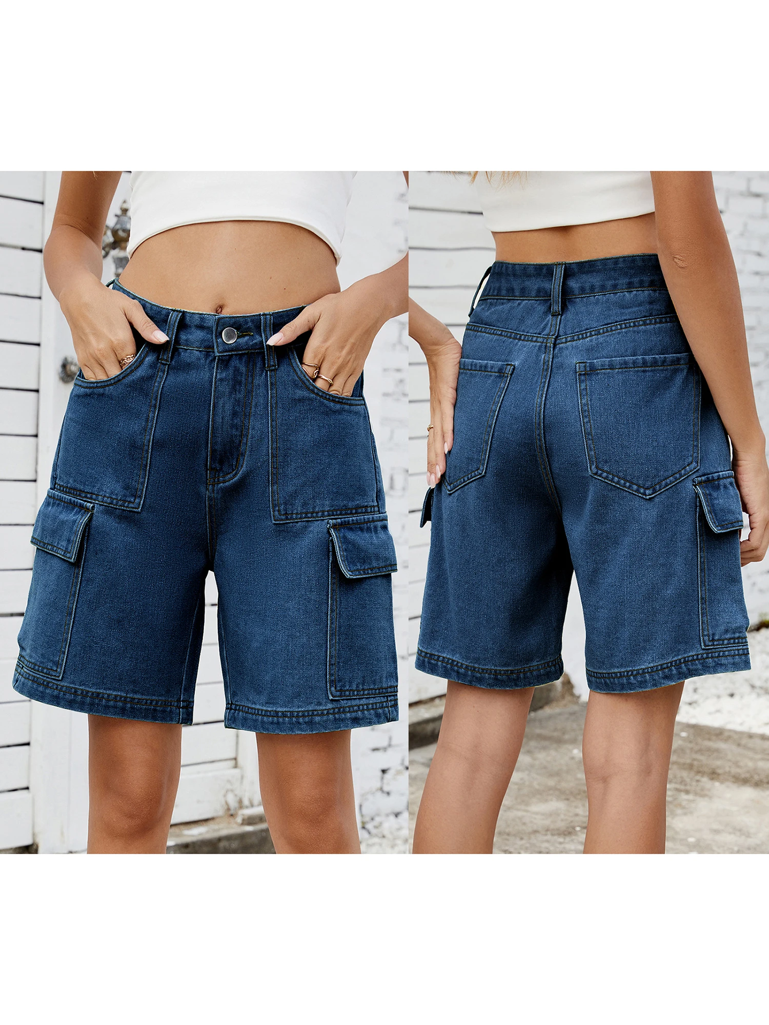 Womens Summer Bermuda Denim Shorts Casual Mid Rise Straight Leg Knee Length Cargo Jean ShortsSize (cm)