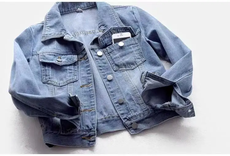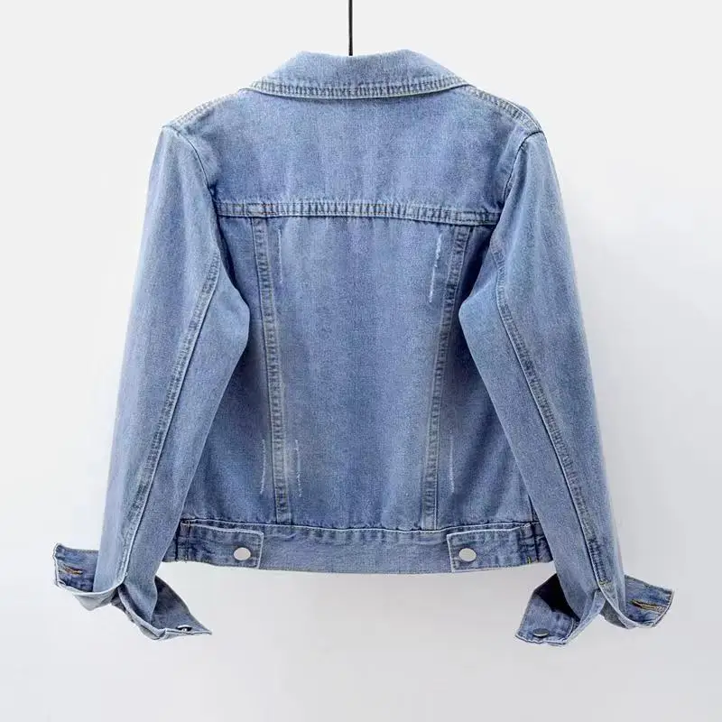 Women's Denim Jacket Short Slim Fit Washed Coat Single-breasted Long-sleeve Cardigan Simple Versatile Daily Casual Top Trendy