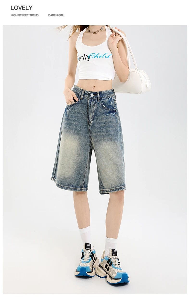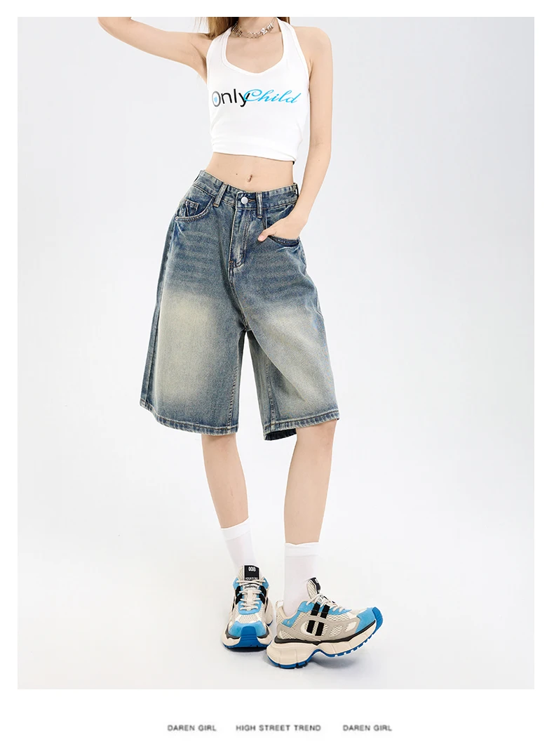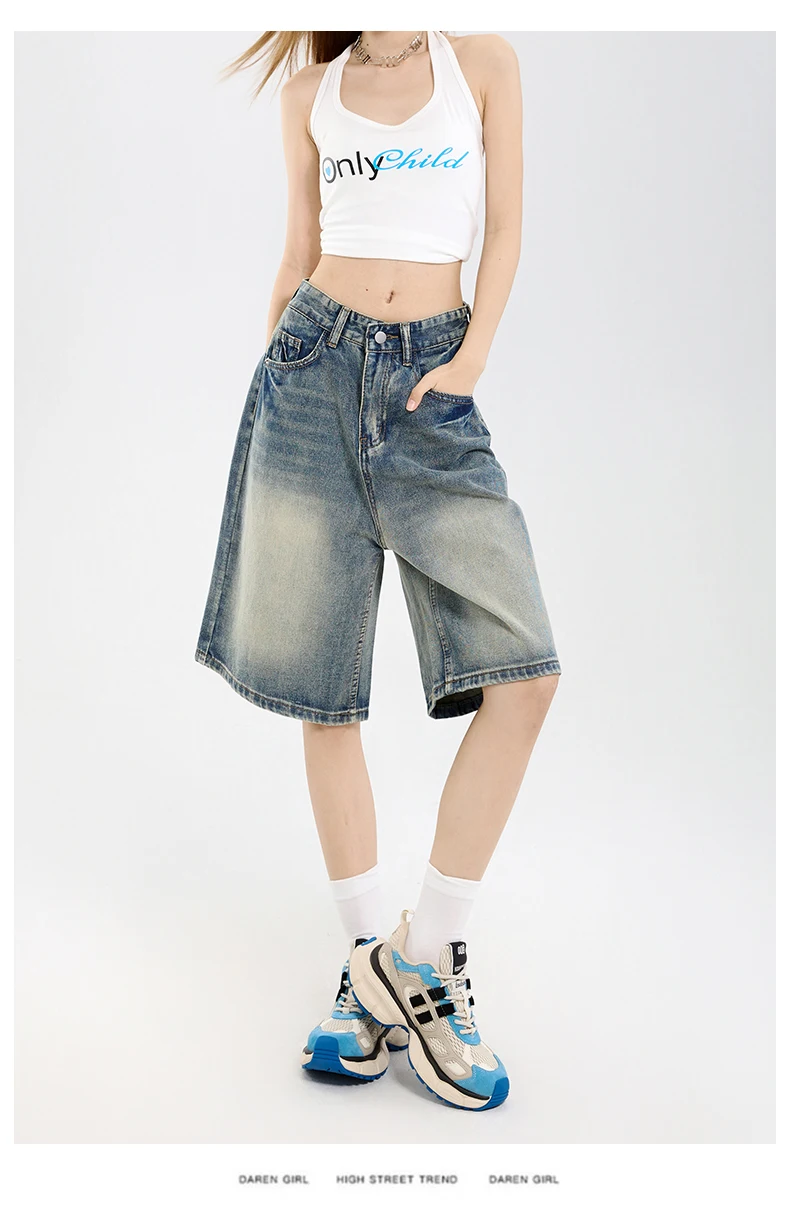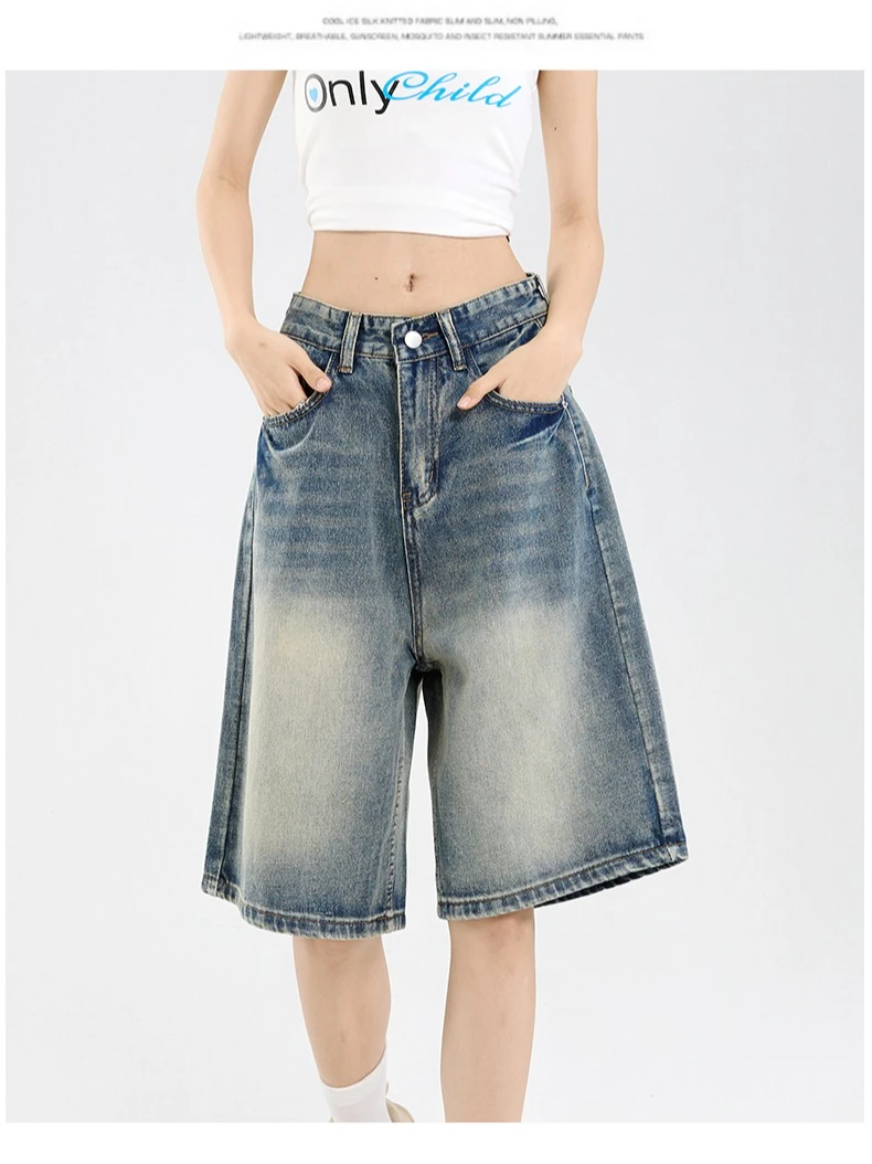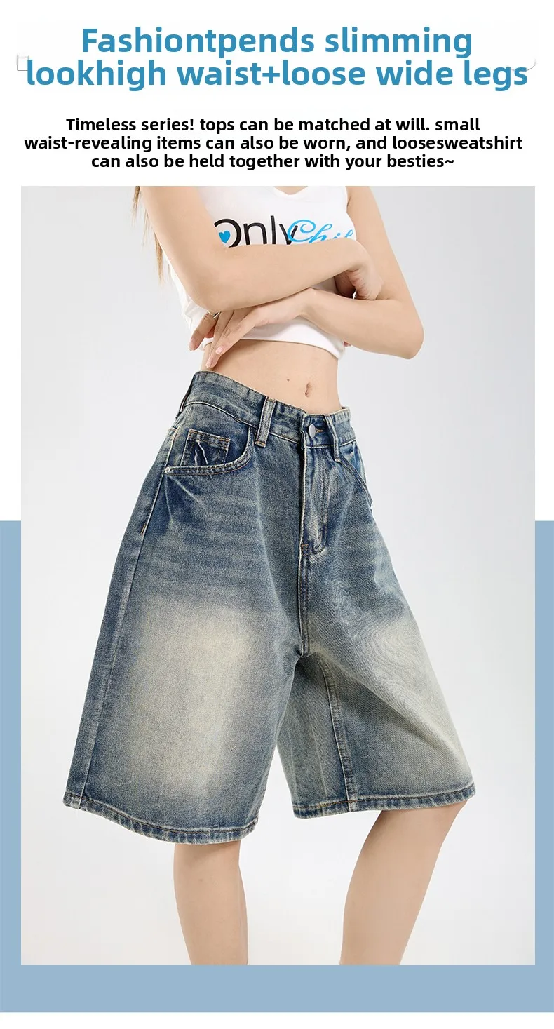 2026 Korean Street Casual Y2K Loose Wide-leg Denim Shorts Five-point Baggy Jeans Women's All-match Straight Summer Hot Shorts