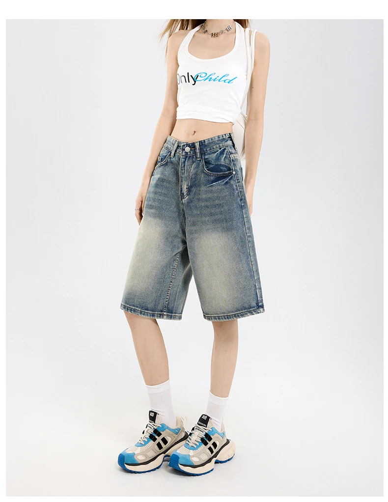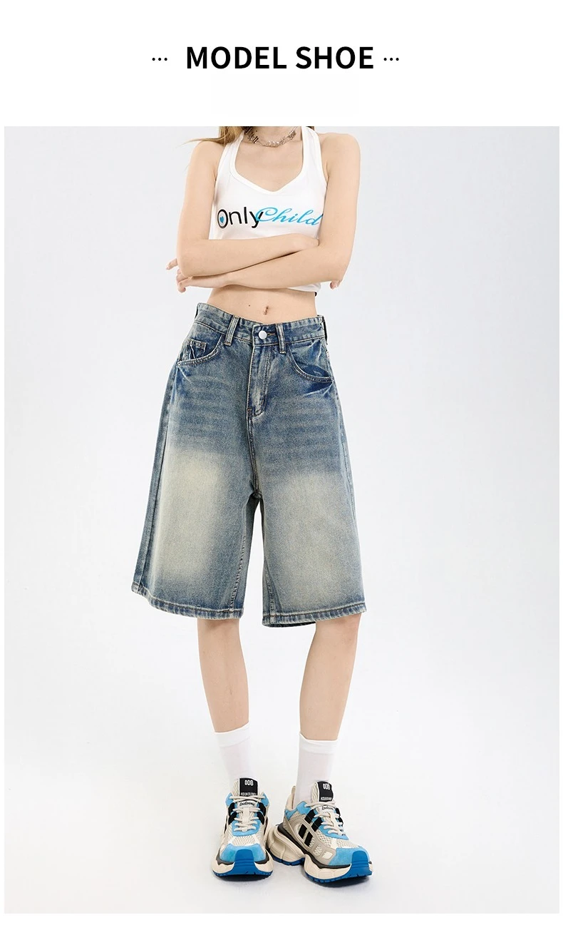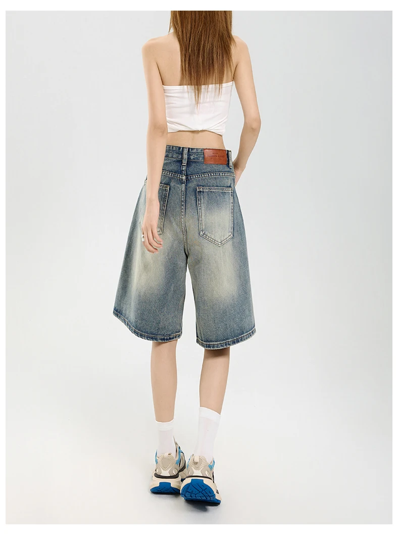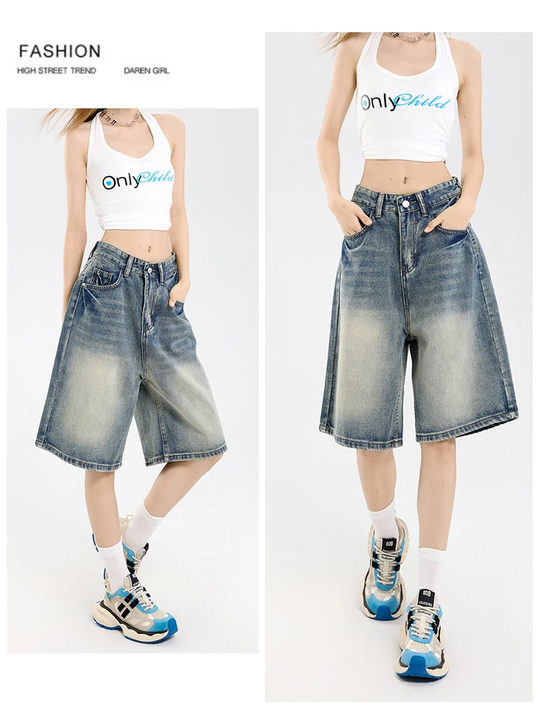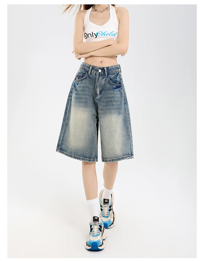 2026 Korean Street Casual Y2K Loose Wide-leg Denim Shorts Five-point Baggy Jeans Women's All-match Straight Summer Hot Shorts