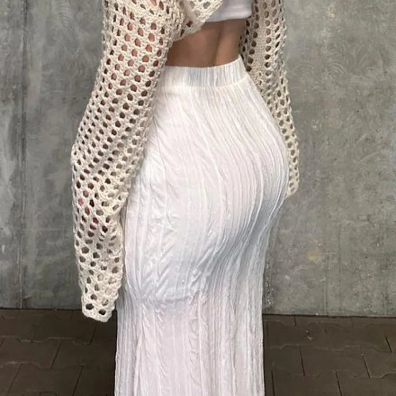 A sexy solid-color fishtail skirt and a fitted high-waisted skirt for women