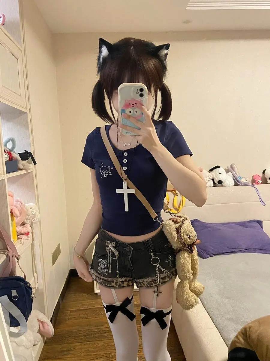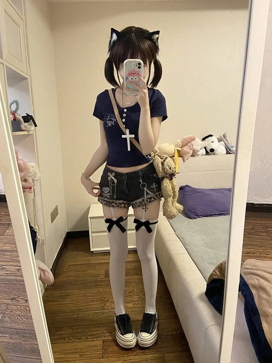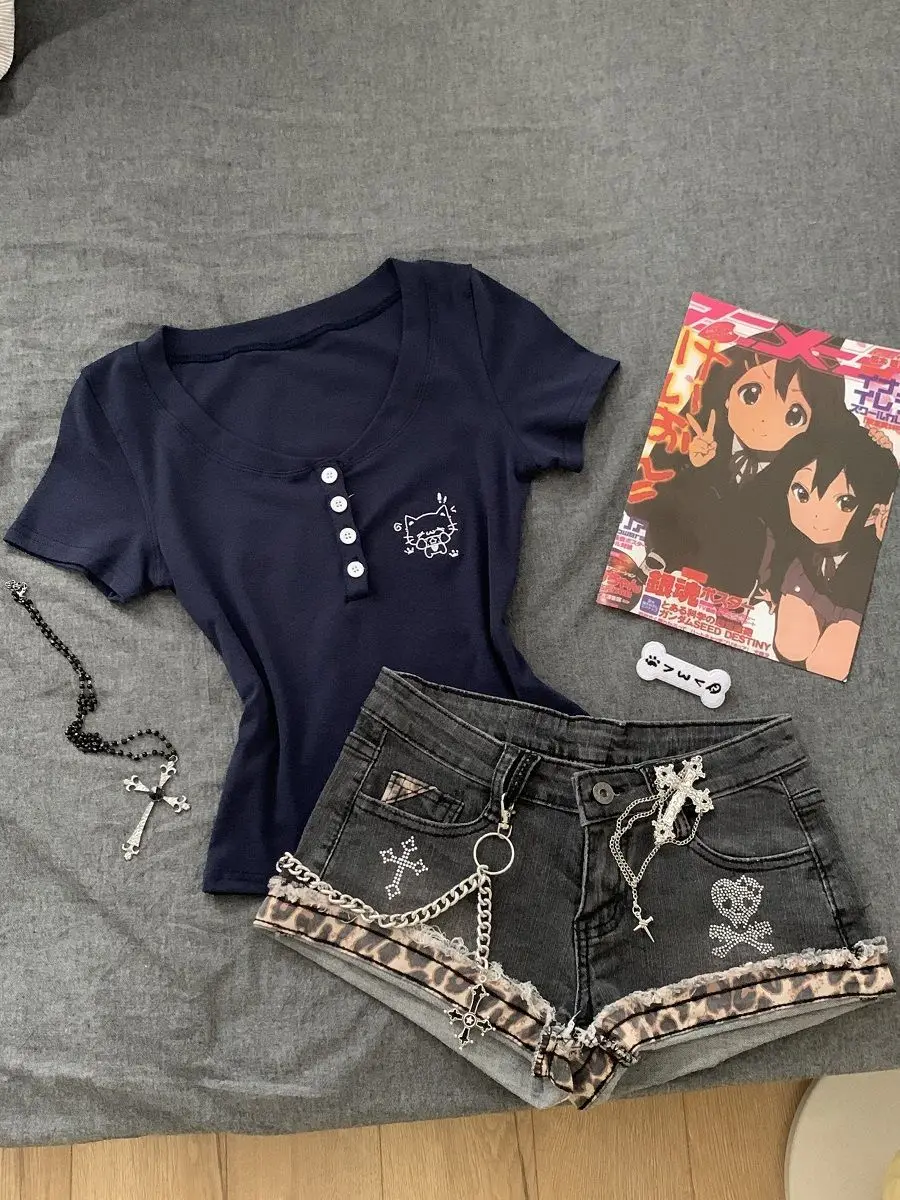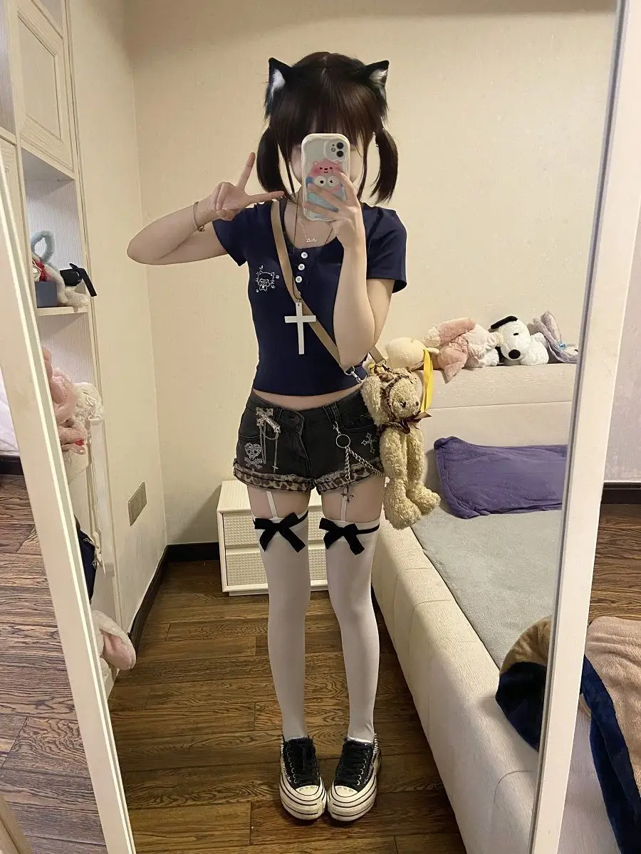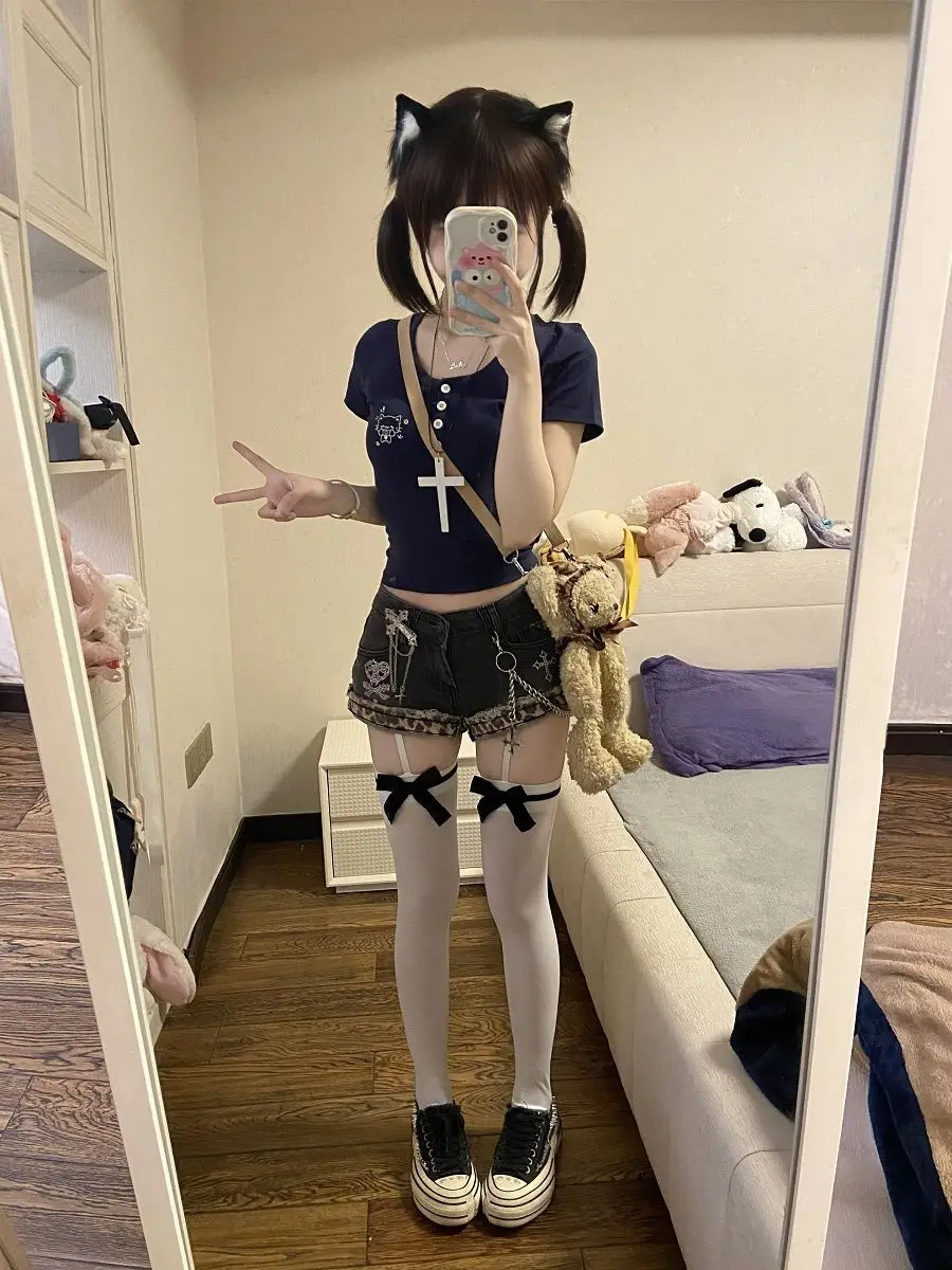 American Sexy Spice Girls Denim Shorts Slim Bodycon Hot Sell Trendy Y2K Goth Mujer Pantalones Pure Desire Punk Style Moda Pants