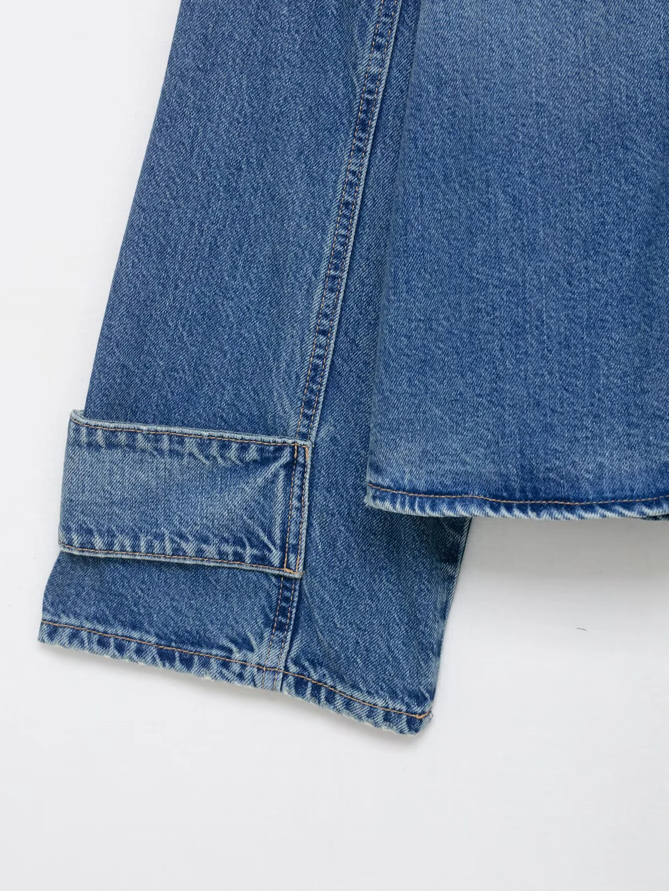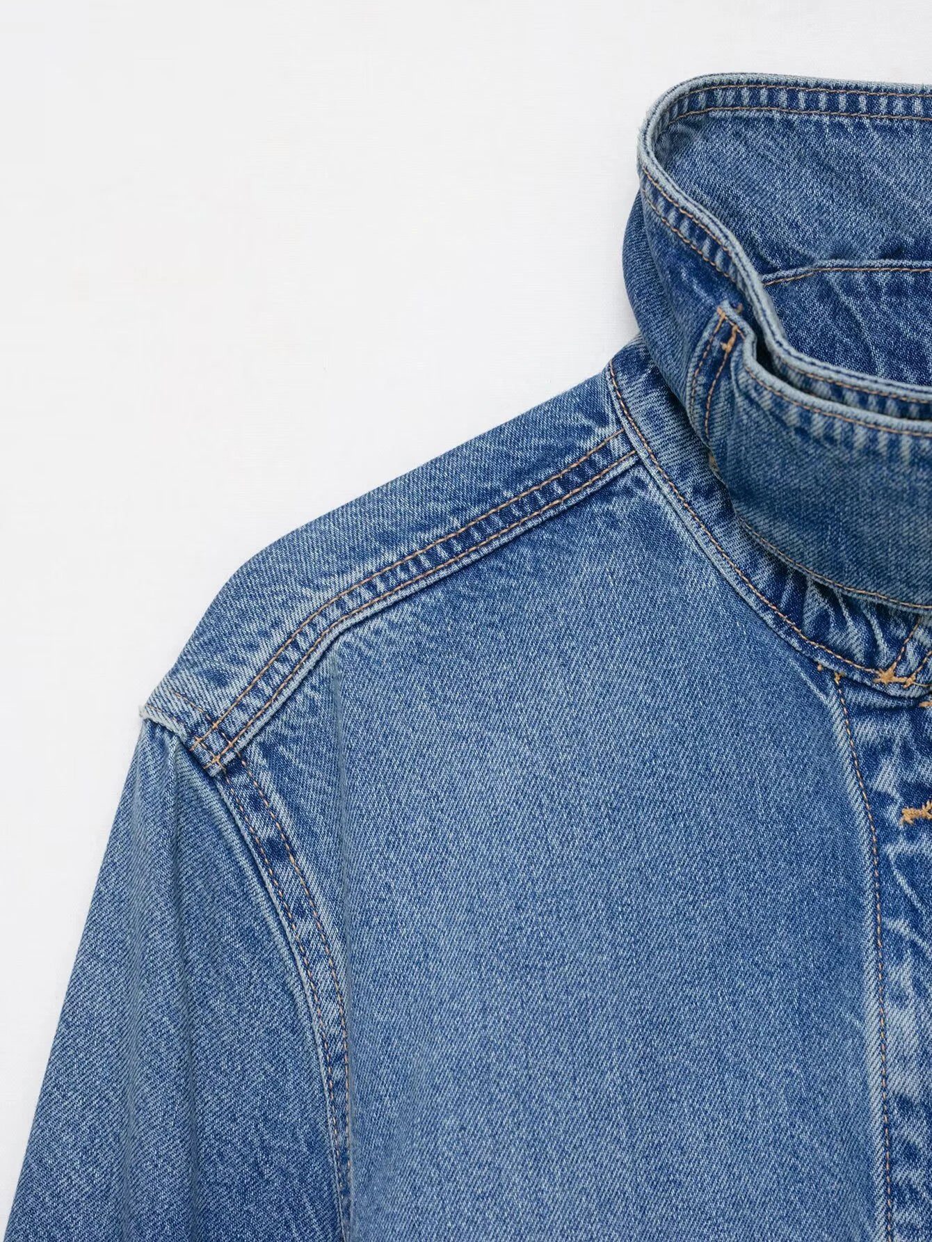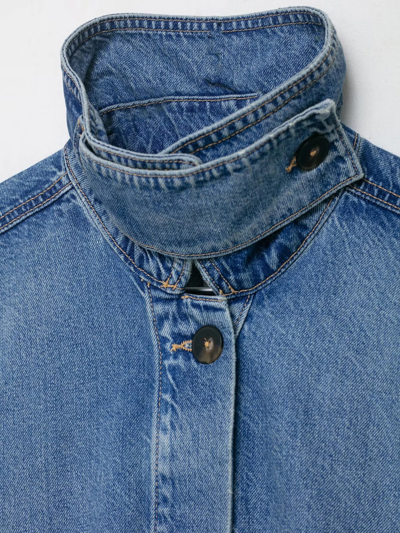 European and American style spring new women's clothing new style hidden button high neck long sleeved denim jacket jacket