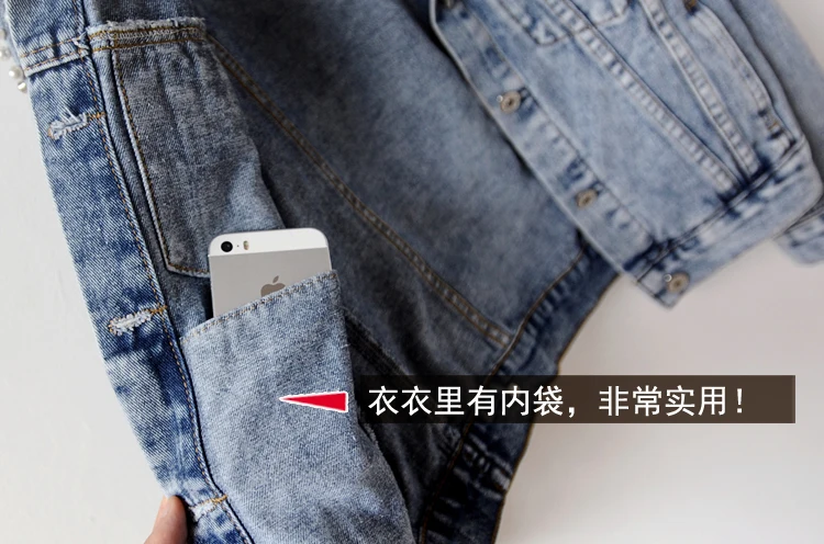 Korean 2026 Spring Autumn Edition Heavy Industry Fashion Nail Bead Short Denim Coat Women's Nine inch sleeve Cowboy Jackets tops