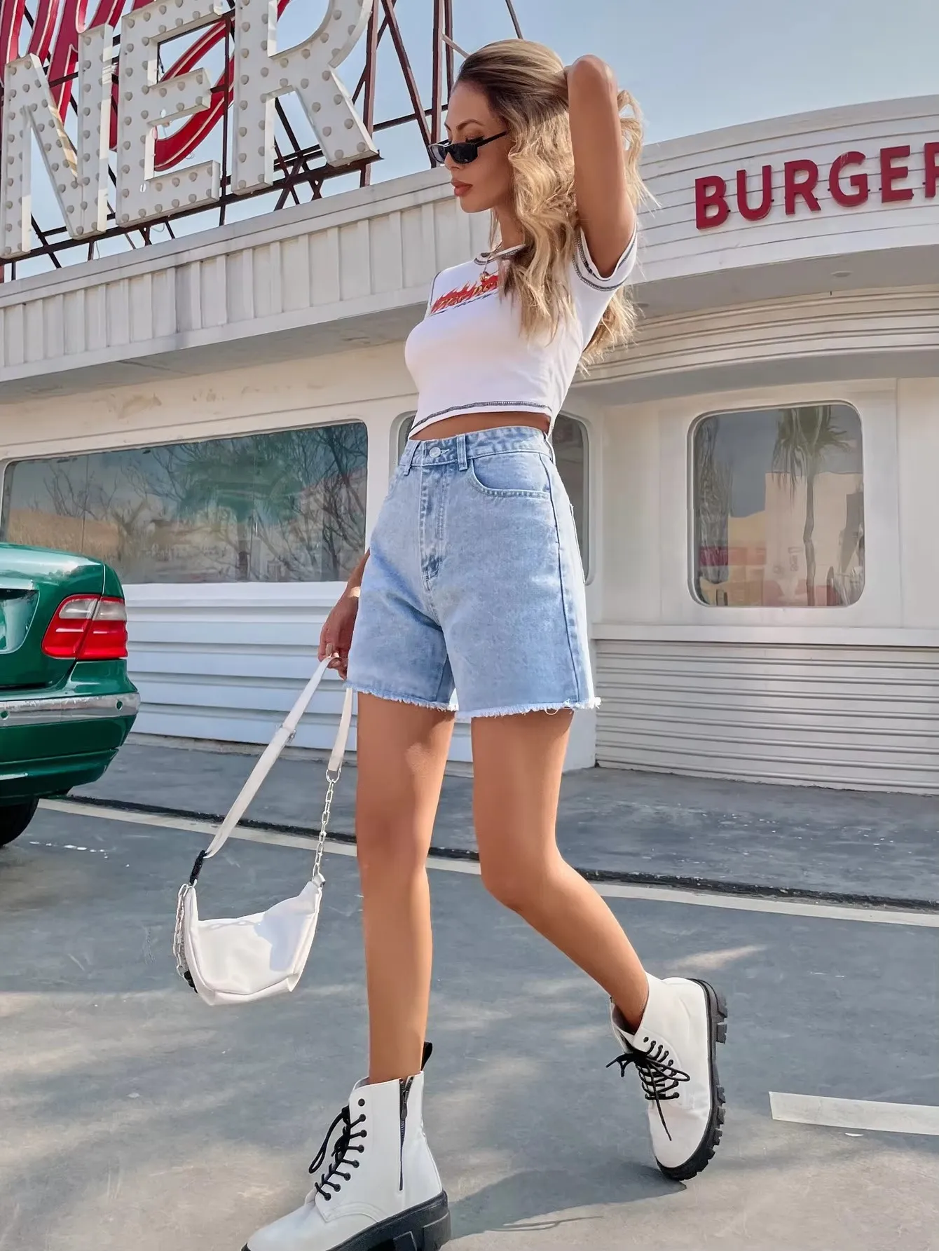 Loose, fashionable, versatile and casual women's denim shorts with high waist and slim fit