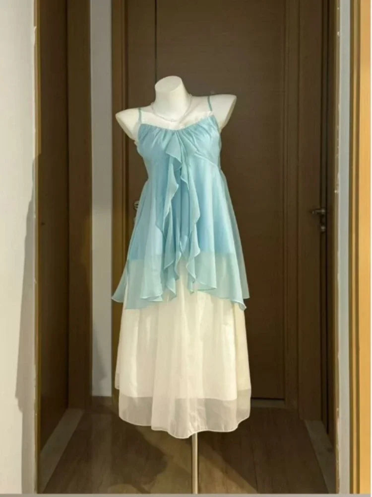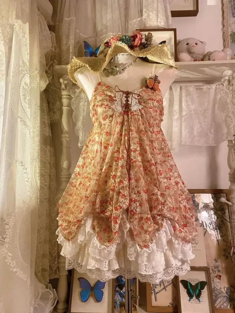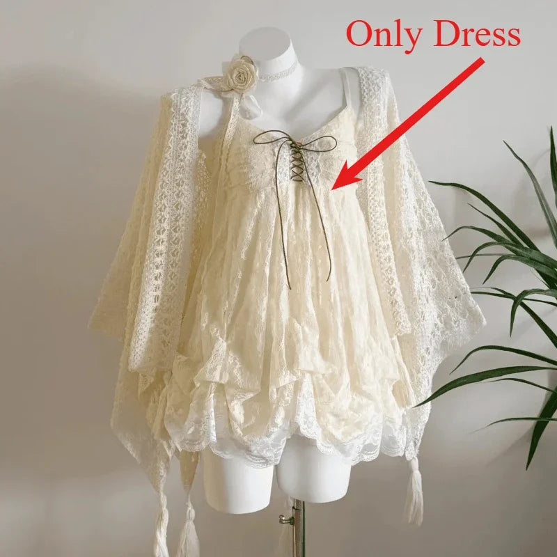 New Vintage Summer Women Sets Elegant Ruffle Lace Chiffon Design Mini Skirt Suit Fairy Female Sweet Korean Fashion Outfits 2025