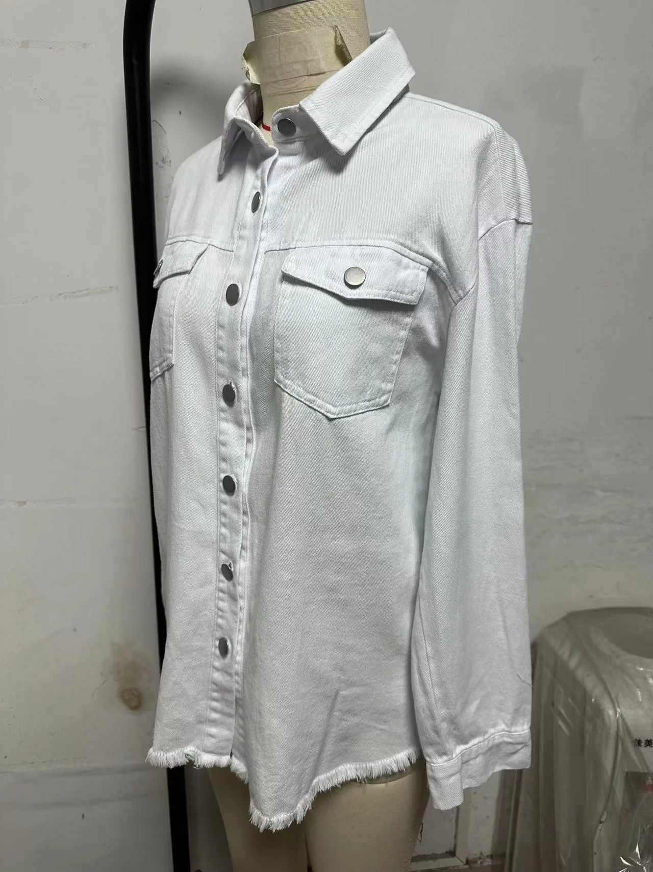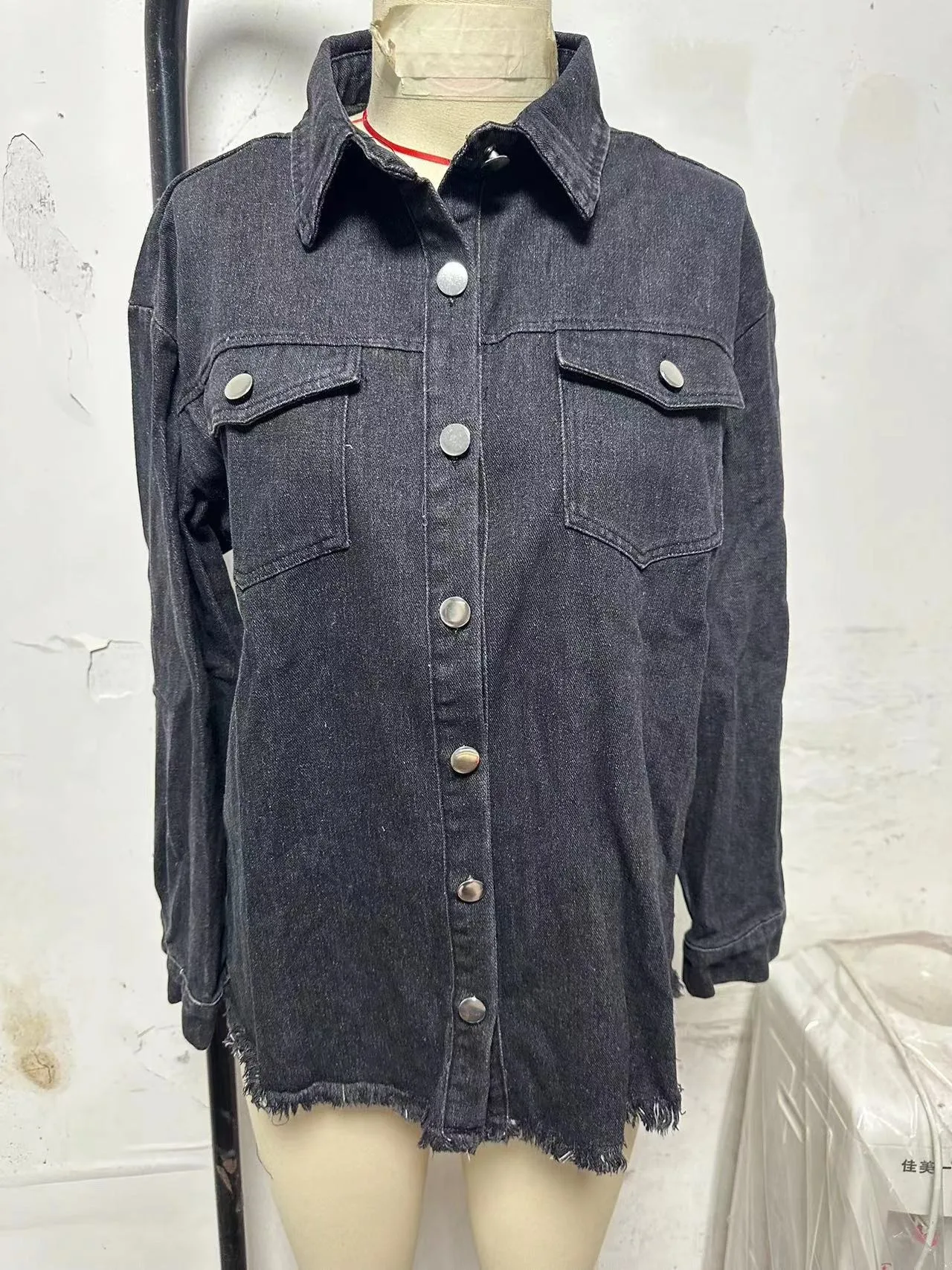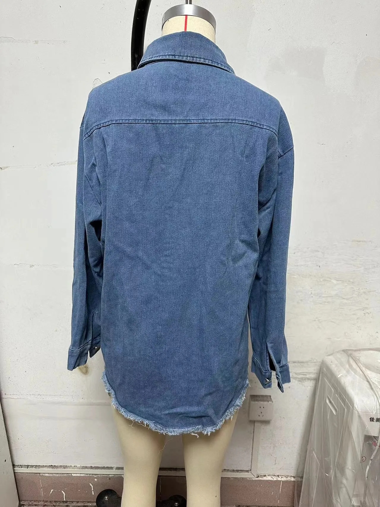 New Washed Denim Shirt Jacket for Women Fall/Winter Street Style with Distressed Hem Women's Outerwear