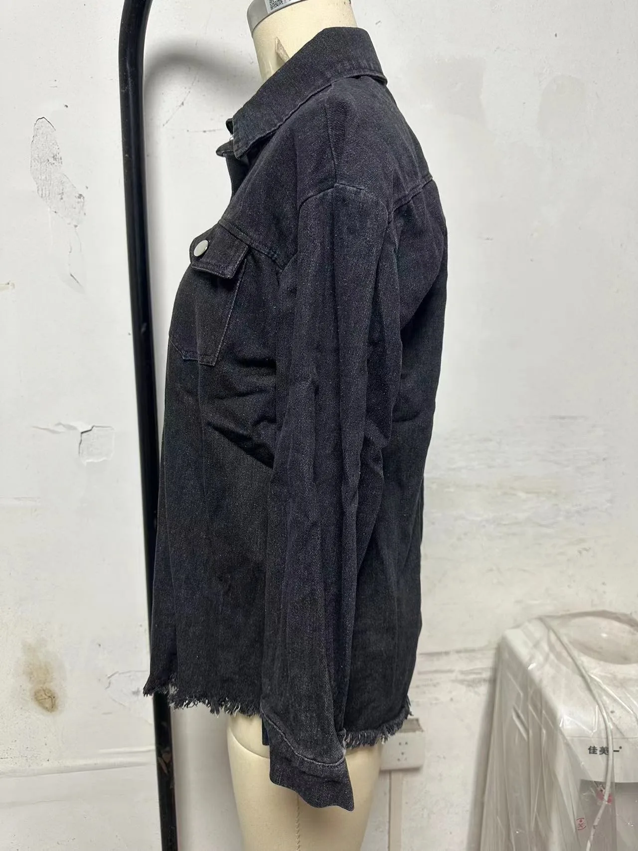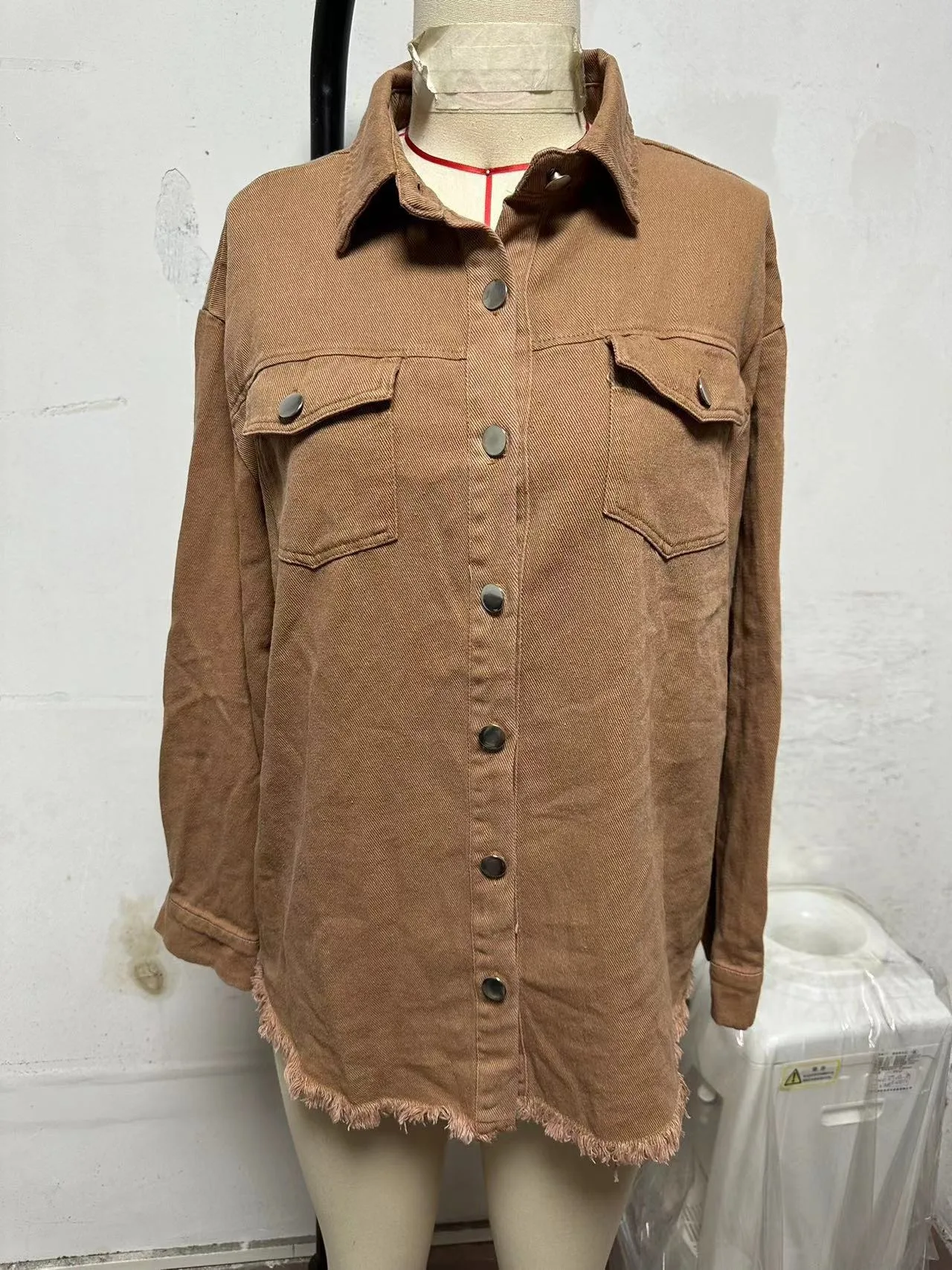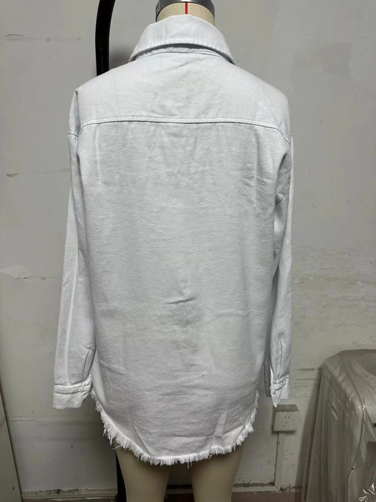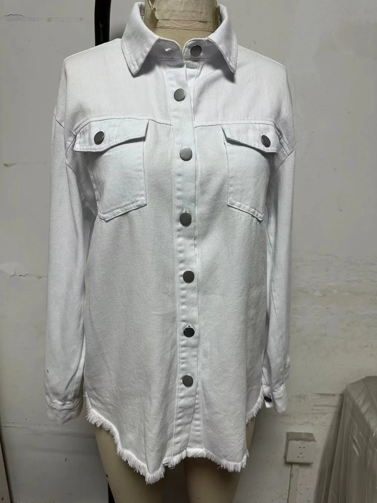 New Washed Denim Shirt Jacket for Women Fall/Winter Street Style with Distressed Hem Women's Outerwear
