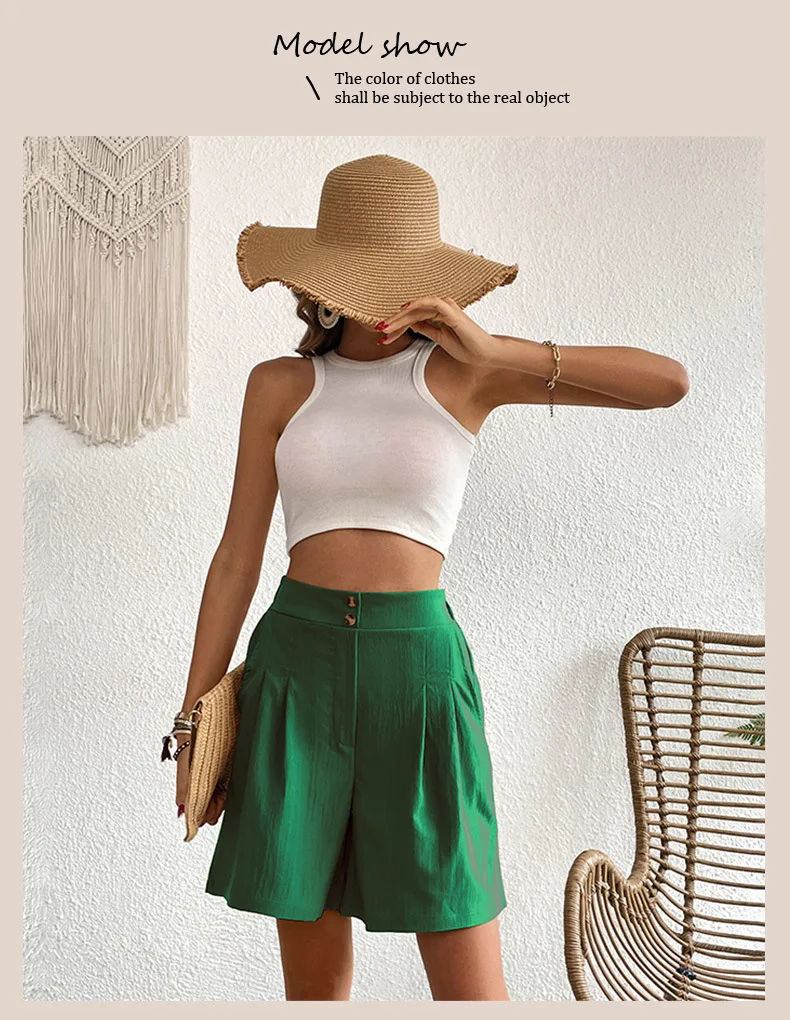 Pinkycolor Fashion Summer Women Solid Color Double Button High Waisted Comfortable Straight Cylinder Loose Multicolor Shorts
