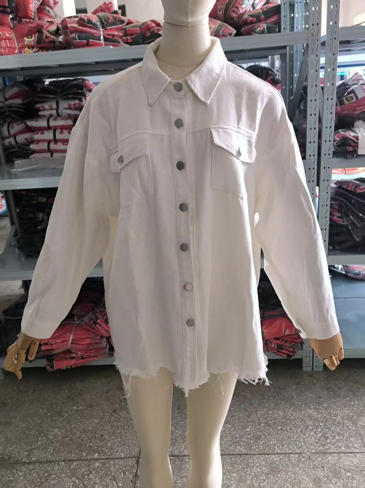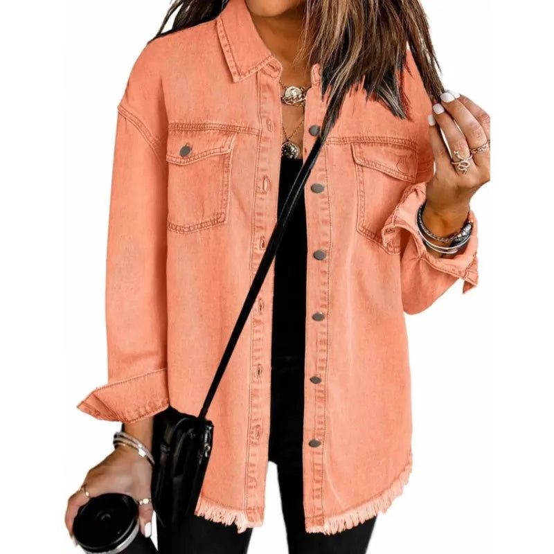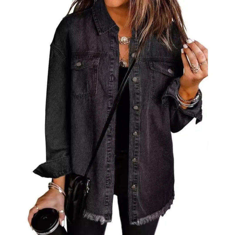 Women Fashion Denim Shirt Full Length Jacket Single Breasted Outerwear Washing High Street Cardigan Pocket Loose Coat Streetwear