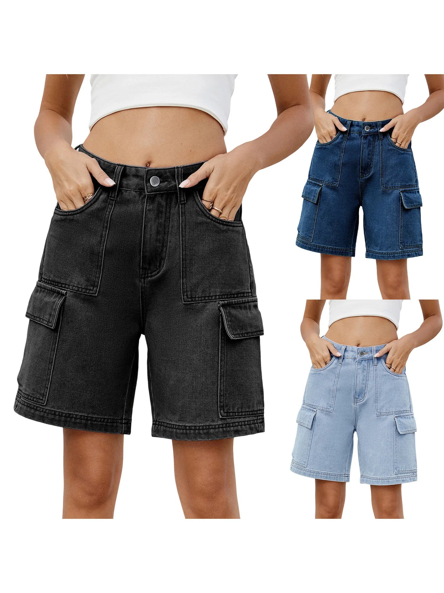 Women’s Summer Bermuda Denim Shorts Casual Mid Rise Straight Leg Knee Length Cargo Jean Shorts