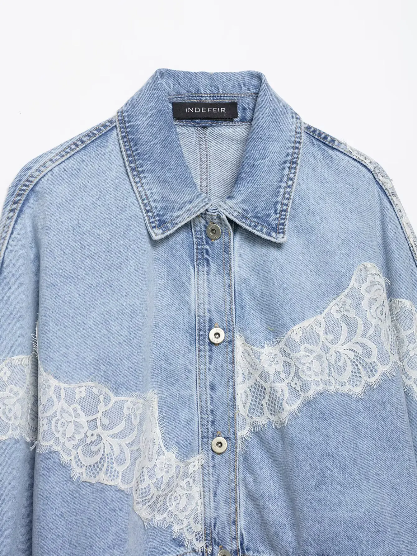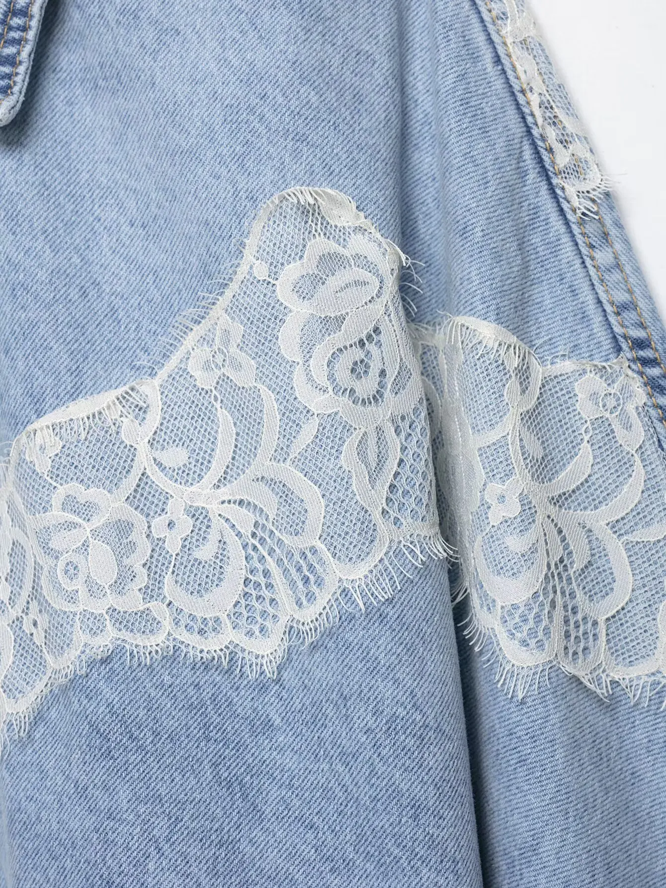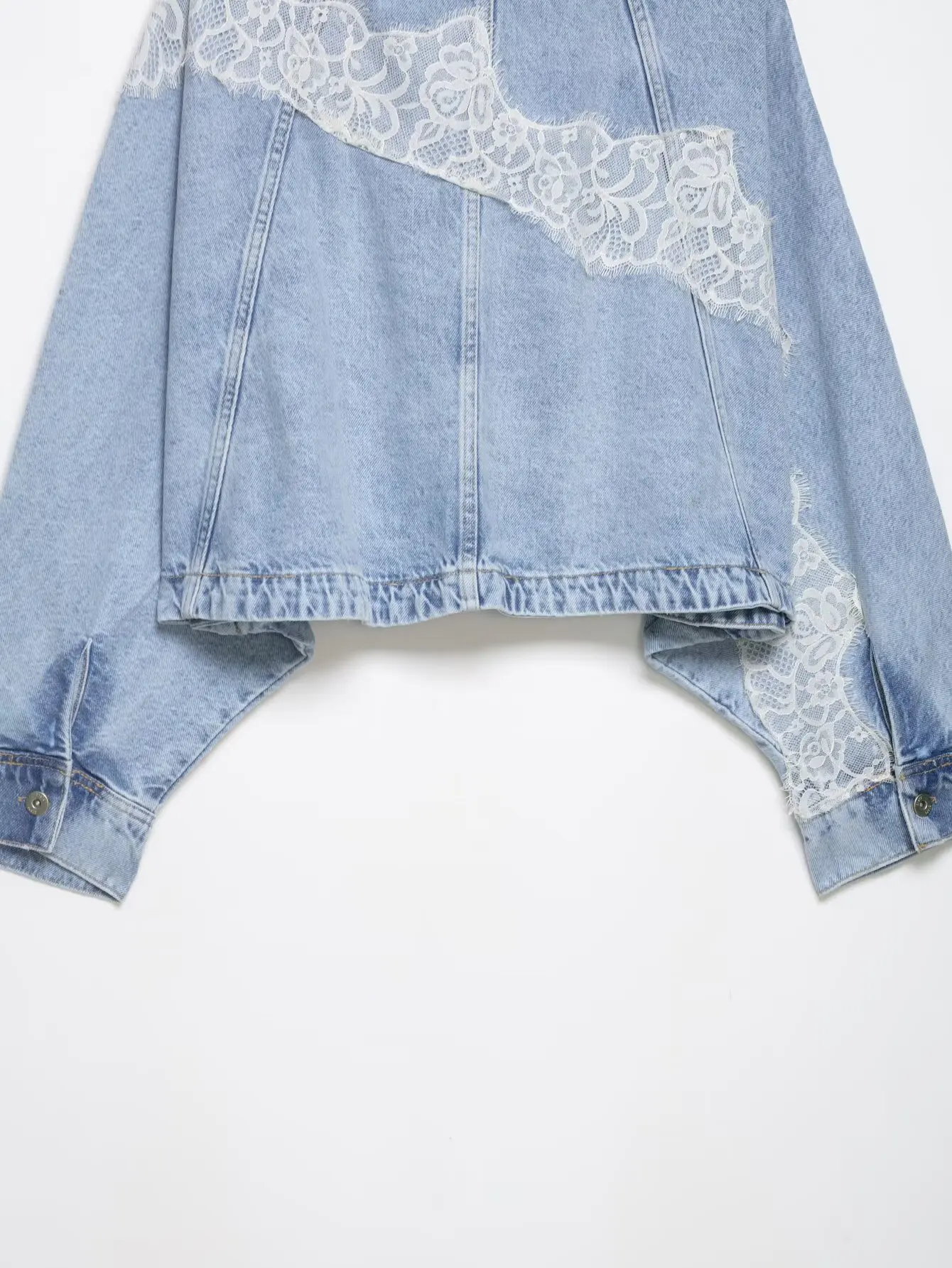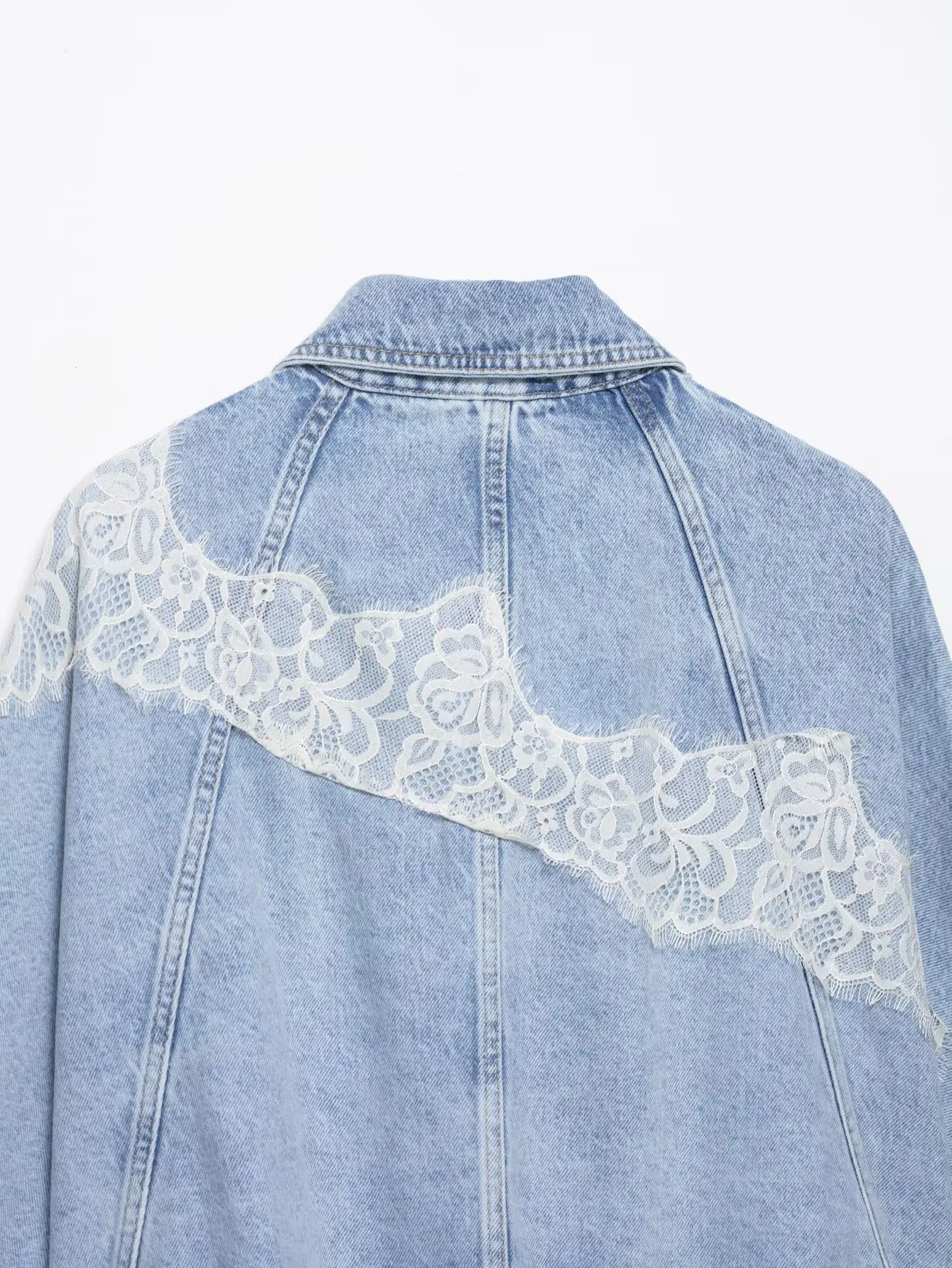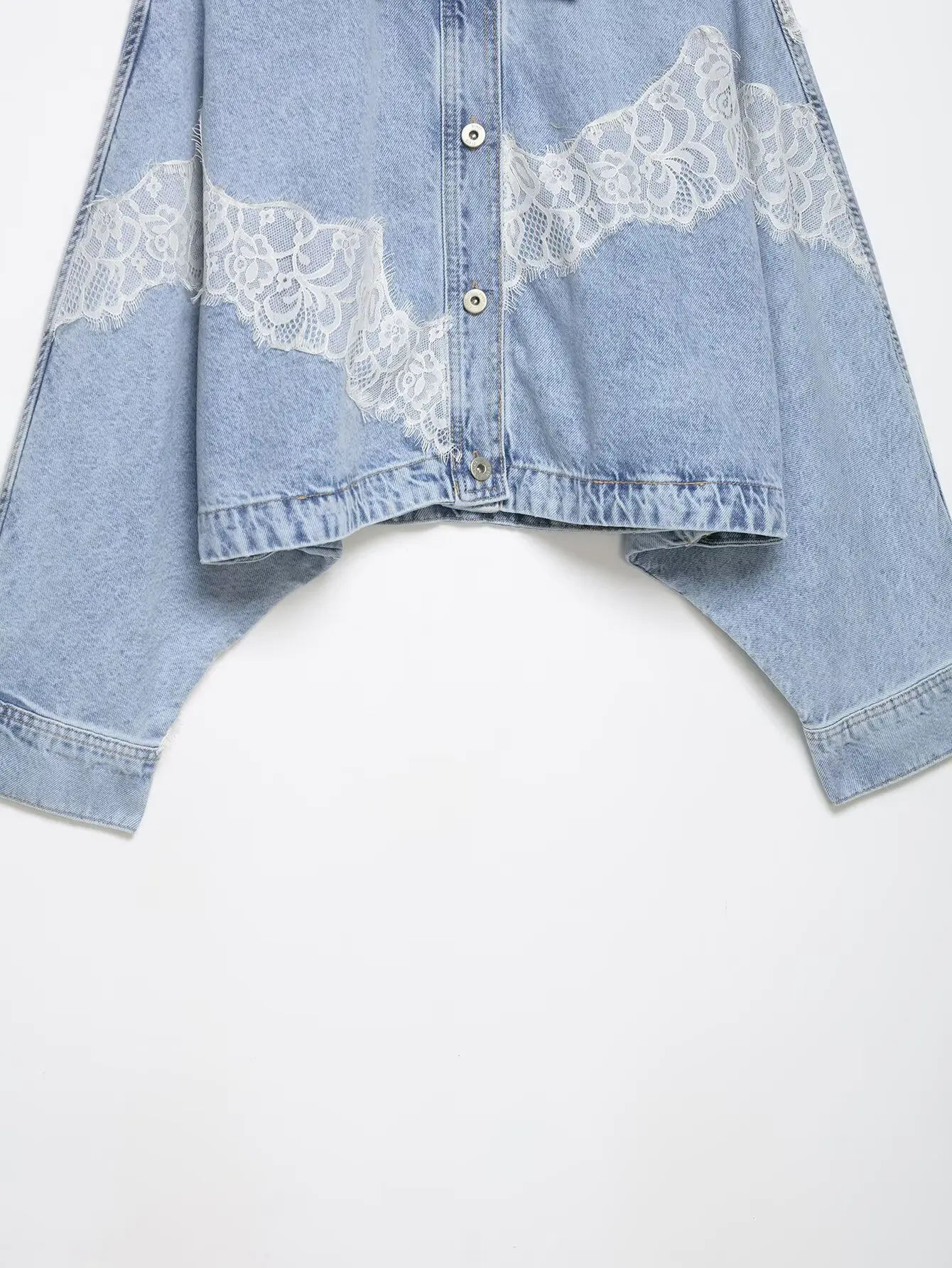 Women's Cropped Lace Denim Jacket New 2026 Spring Long Sleeve Button Female Chic Outerwears High Street Lady Chic Tops