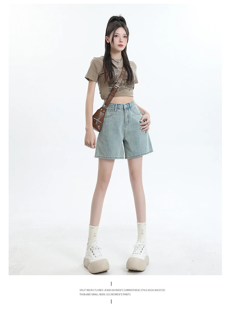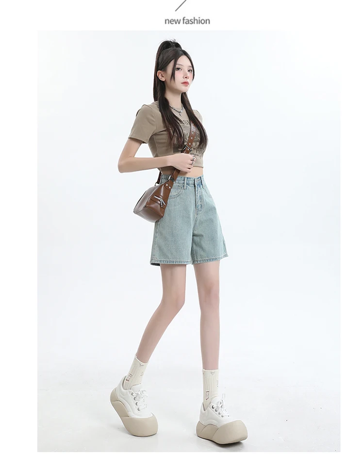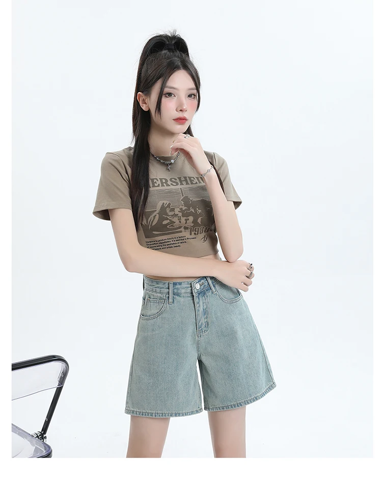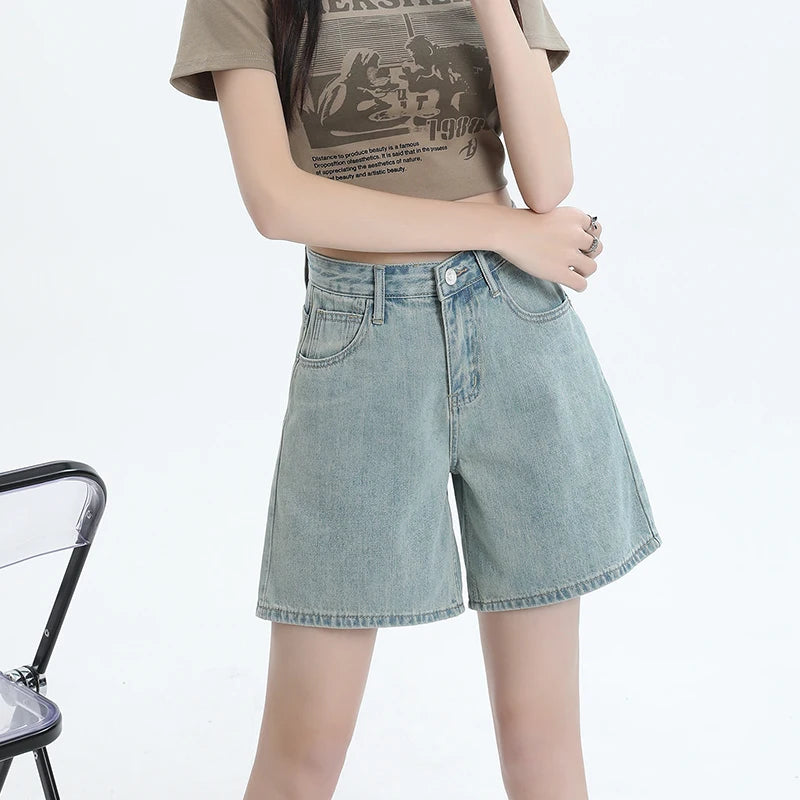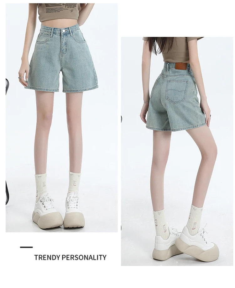 Women's Dark Blue High Waist Denim Shorts Loose Wide Leg Design Sense Niche Vintage Style